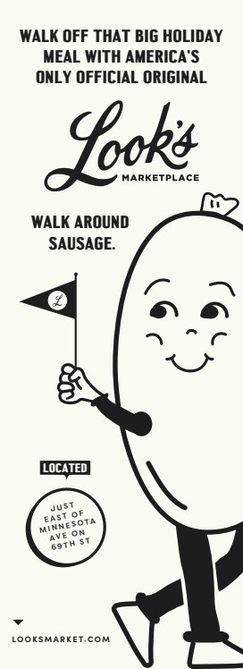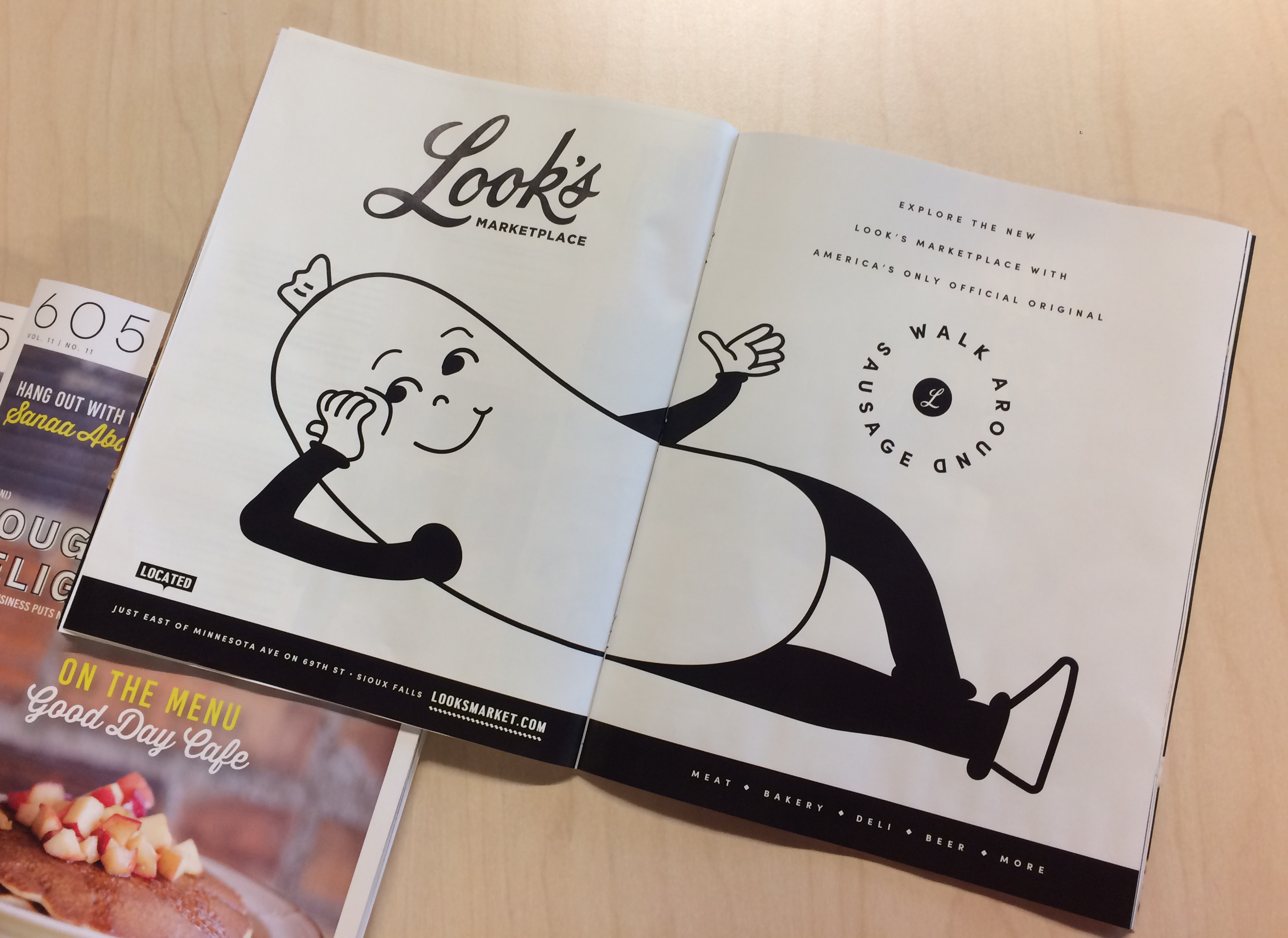 Once we settled on a look for the Look’s mascot, the Walk Around Sausage, he walked his way onto most of the print, digital, and billboard materials we made.